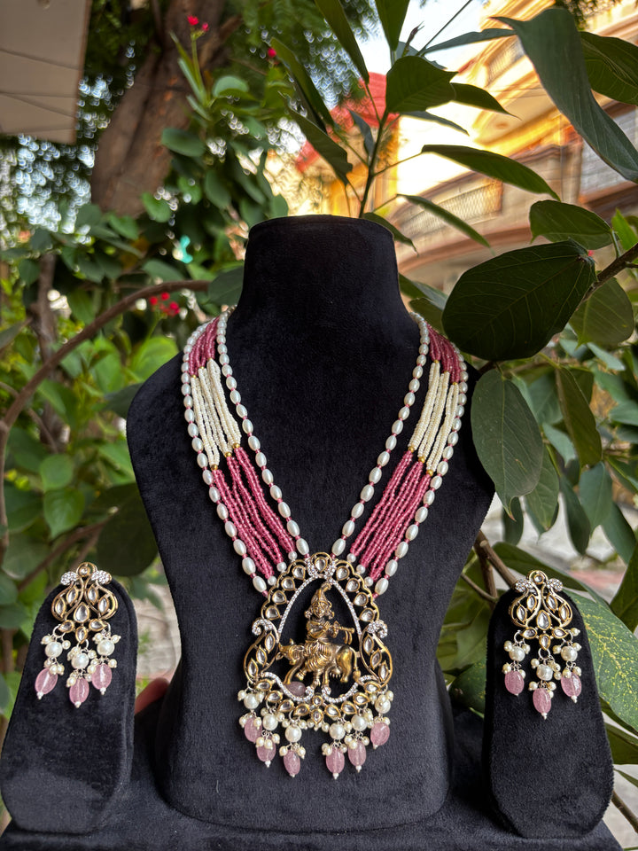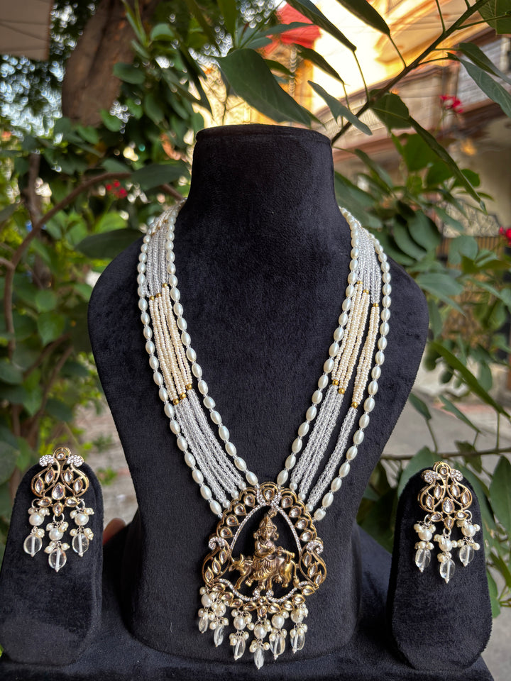 BEADED PEARLS WITH LORD KRISHNA PENDANT TEMPLE JEWELLERY SET
