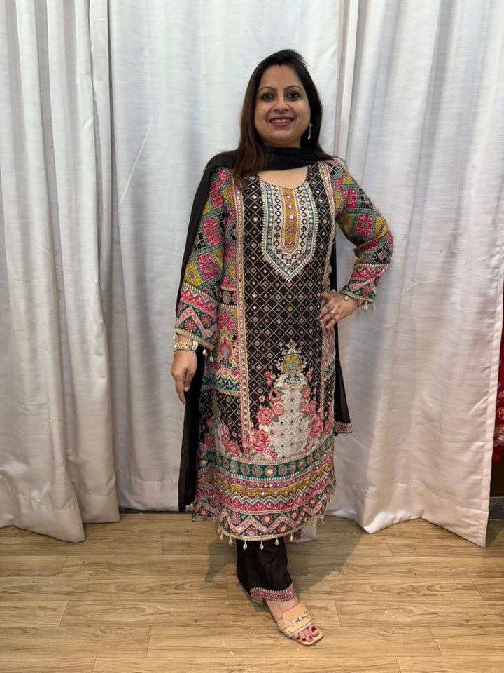 BLACK CREPE FESTIVE WEAR KURTA SET