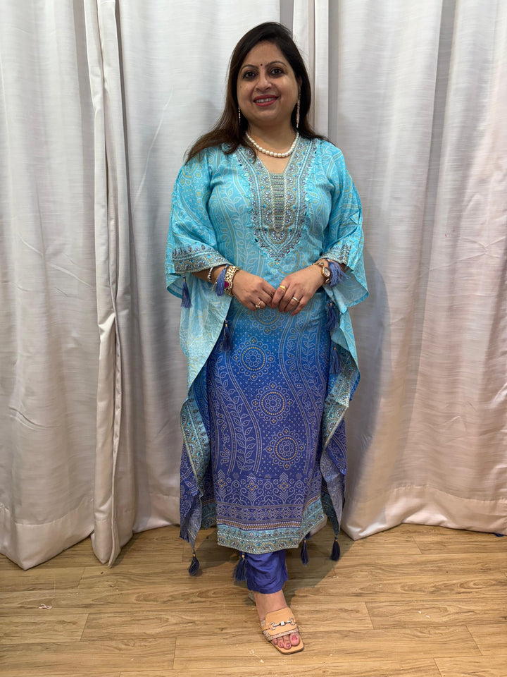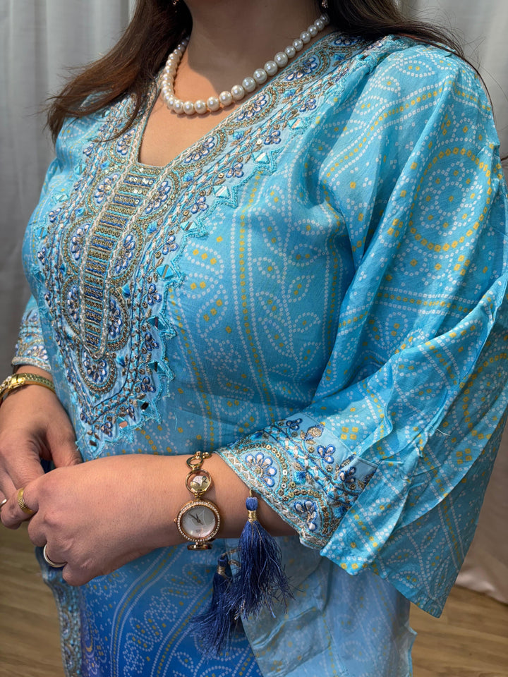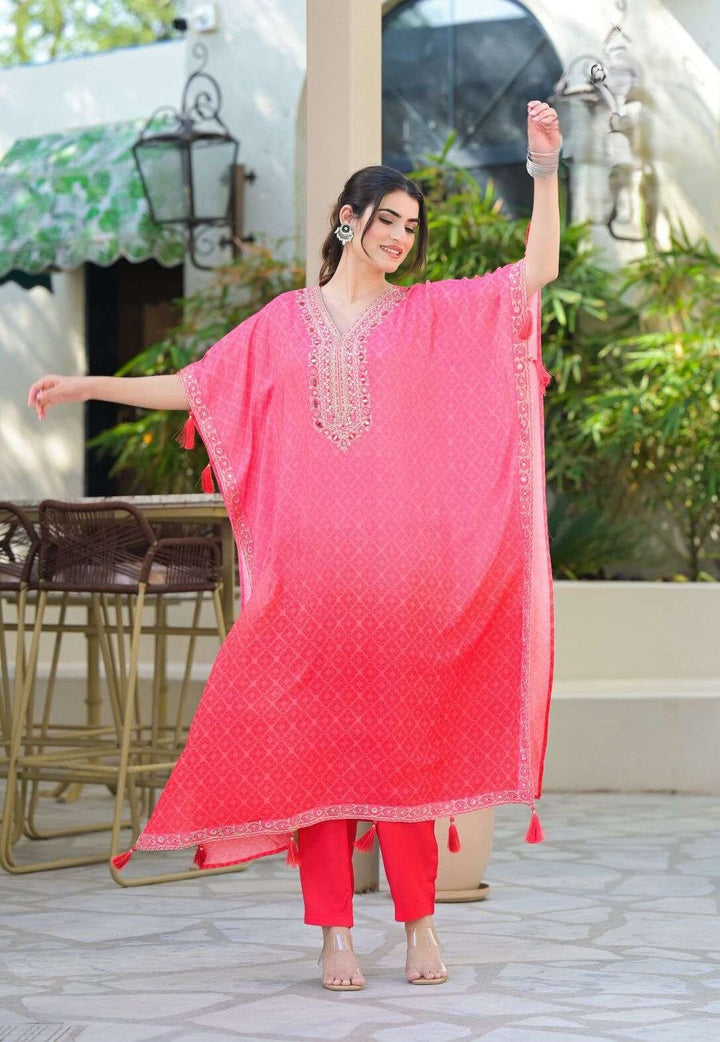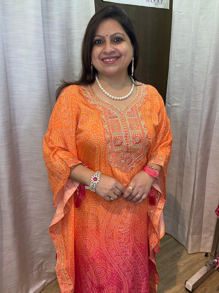 BUTTER MUSLIN BANDHNI KAFTAN SET