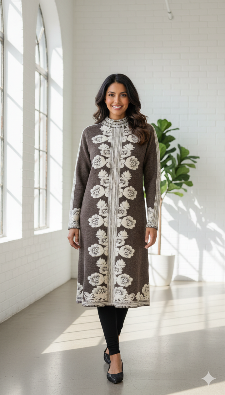 Wrap yourself in the timeless elegance and cozy warmth of the Heritage Knit Tunic. Designed for sophisticated comfort, this piece instantly elevates your winter wardrobe, serving beautifully as both a longline tunic paired with leggings or as a chic, modest sweater dress.
