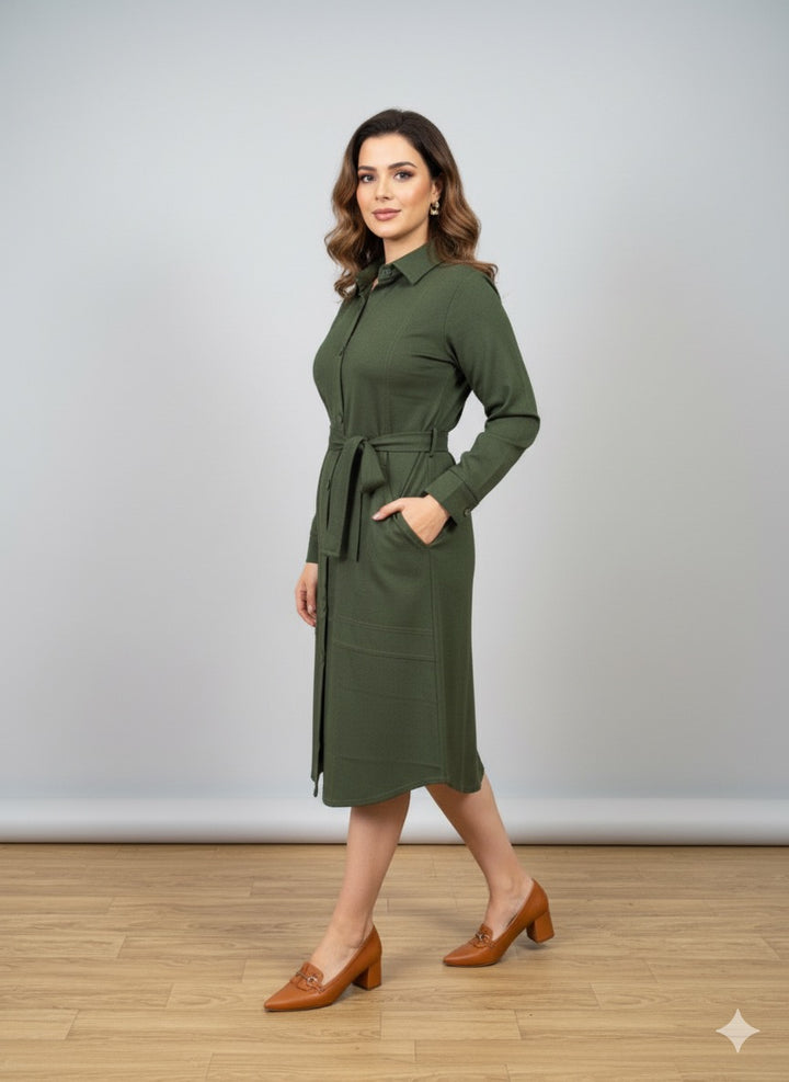 COASTLINE CASUAL MIDI DRESS WITH BELT