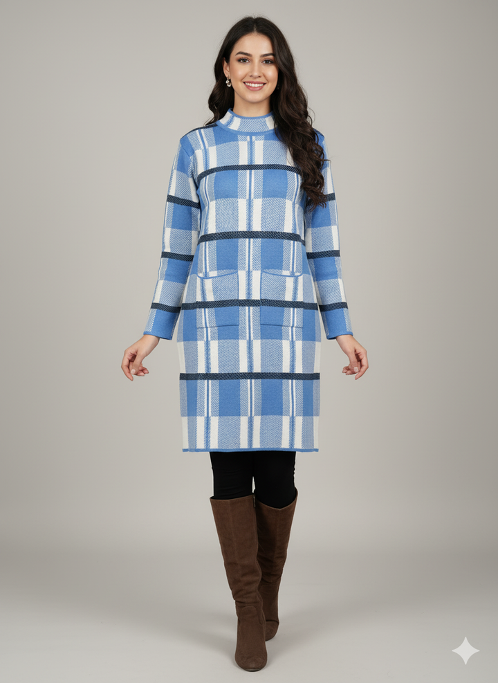 COZY KNITTED PLAID TUNIC DRESS (With Pockets)