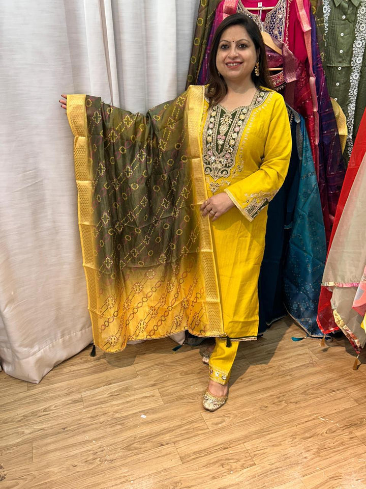 EMBROIDED KURTA SET WITH OMBRE DUPATTA