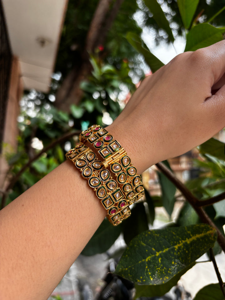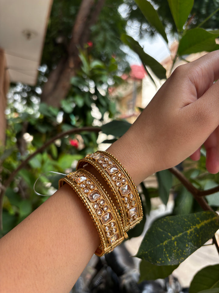 GOLD PLATED SLIP ON BROAD BANGLES (set of 2)