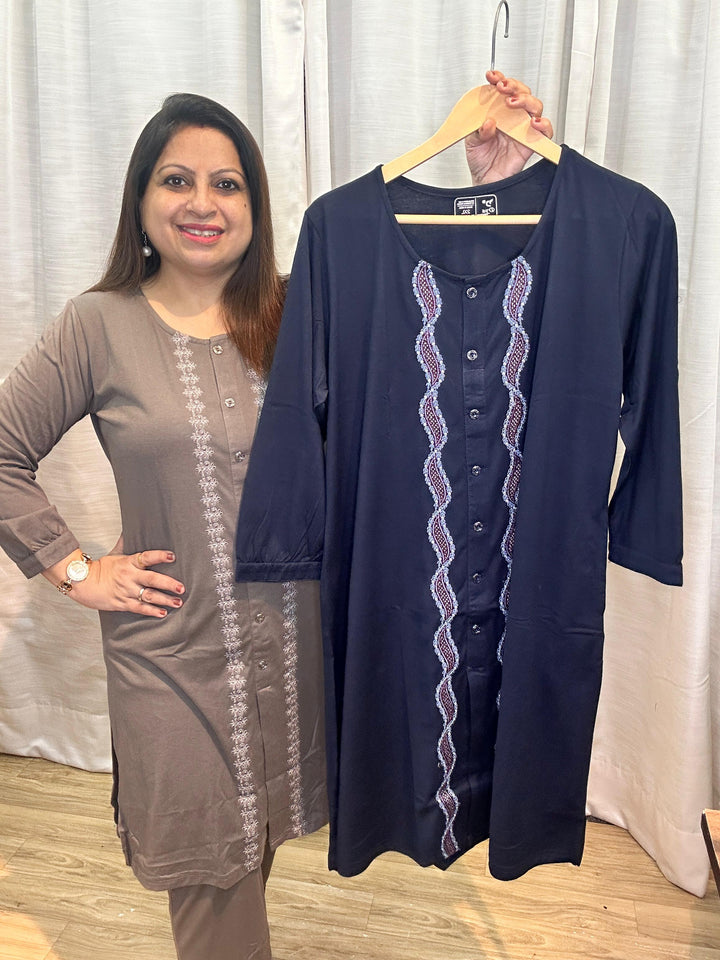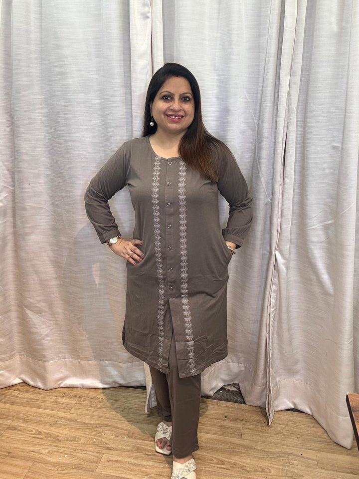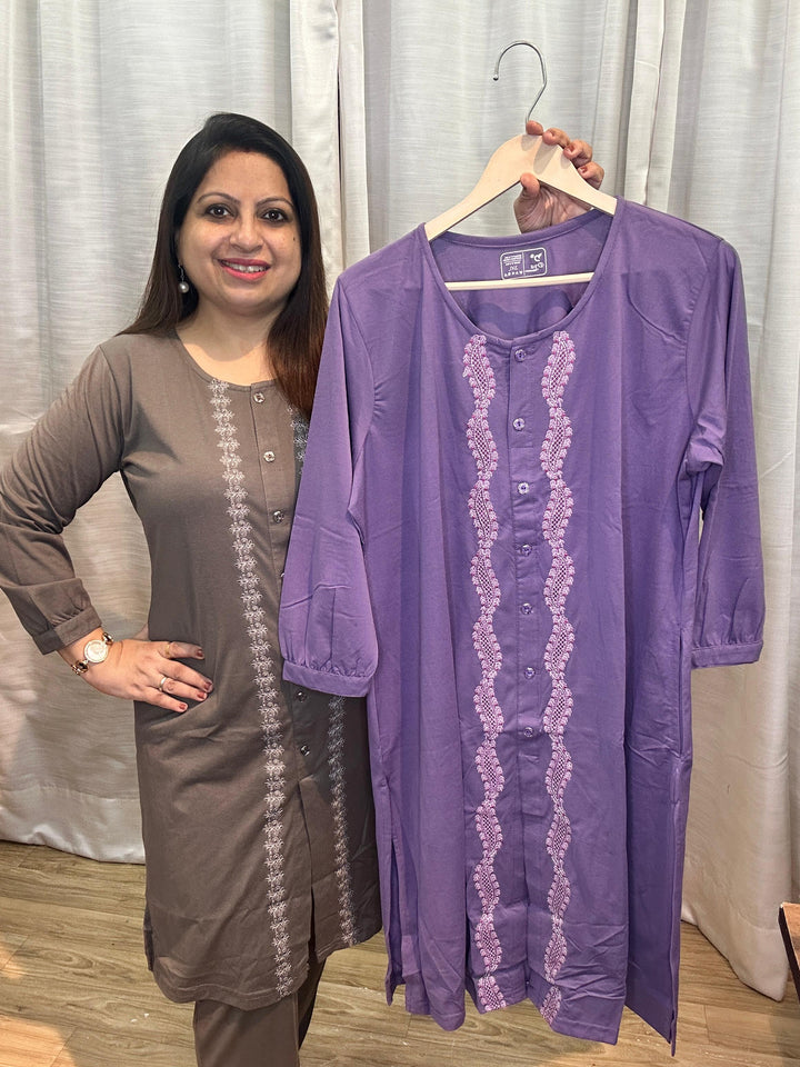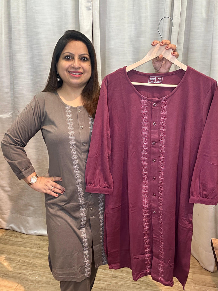 HOSIERY COTTON FRONT PANEL EMBROIDED NIGHT SUIT