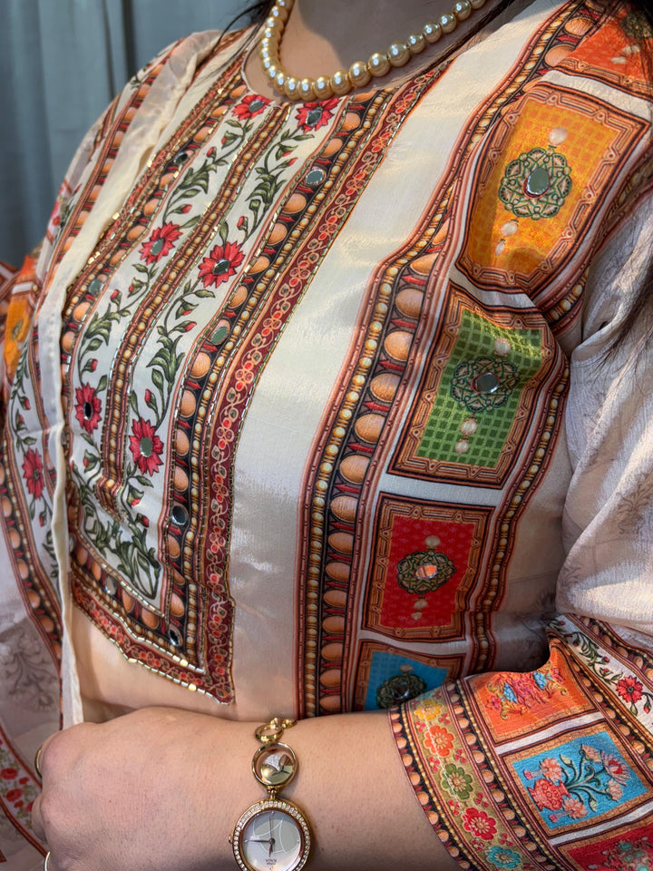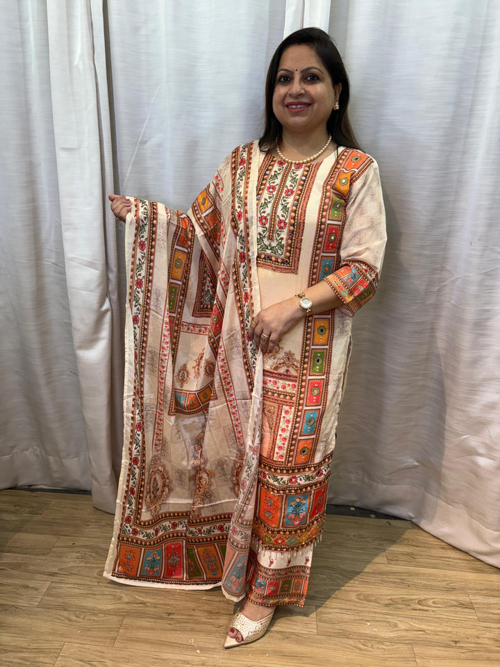 IVORY CHINNON DIGITAL PRINT FESTIVE KURTA SET WITH DUPATTA