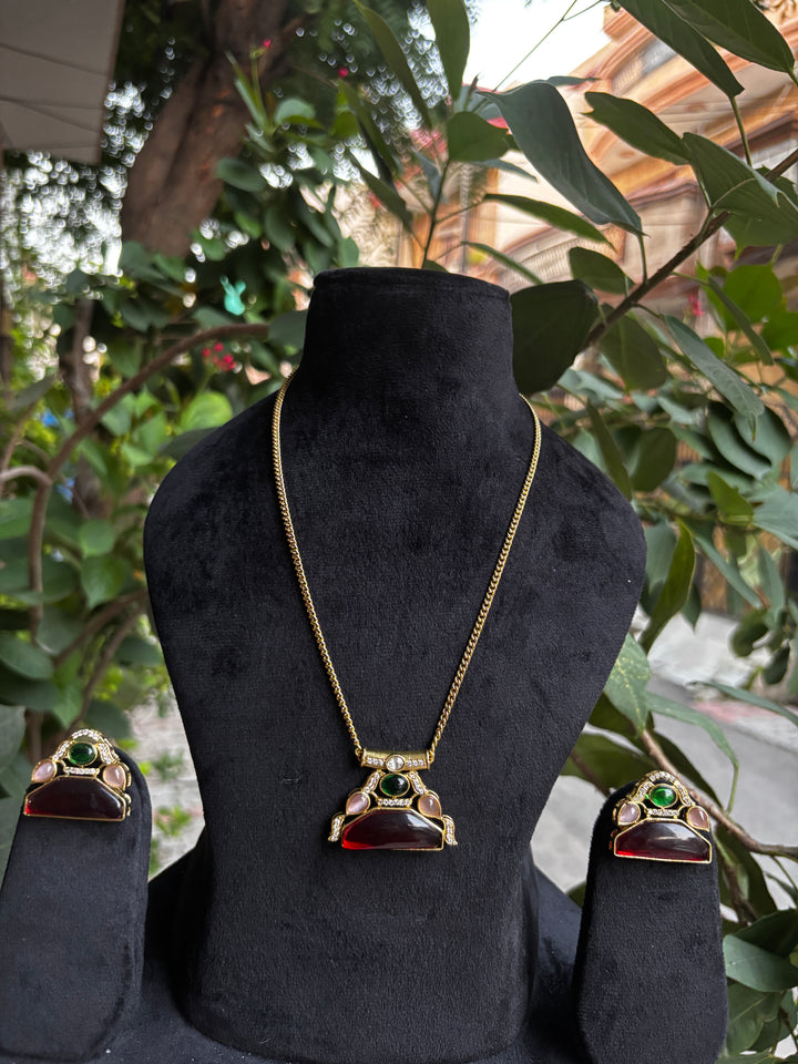 MAROON STONE PENDANT SET WITH EARRINGS