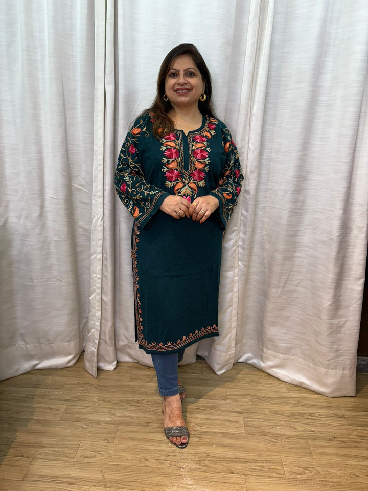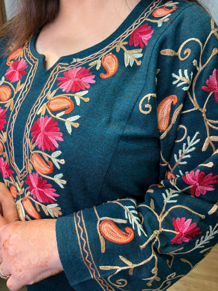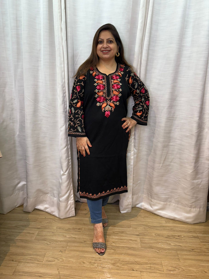 The intricate embroidery on the neckline and sleeves adds a rich ethnic touch, making it perfect for festive occasions, casual gatherings, or office wear. Pair it with jeans, leggings, or palazzos to complete the look.