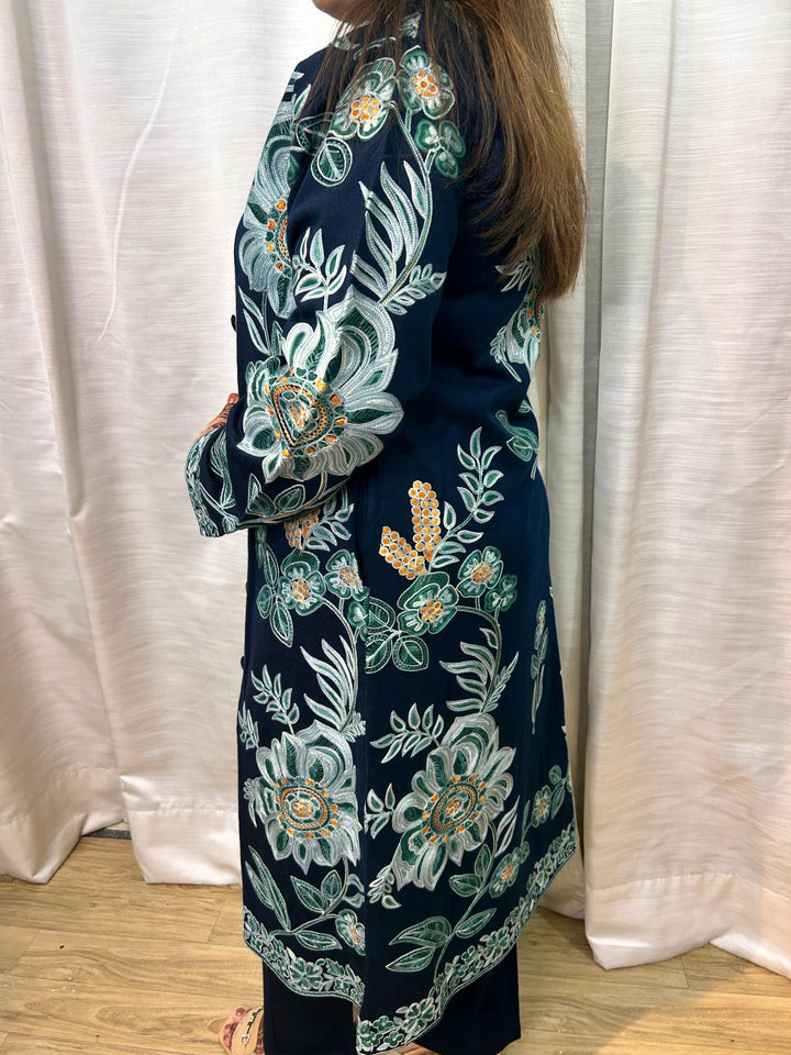 NAVY BLUE KASHMIRI STYLE WOOLLEN SHRUG SET WITH INNER ( TC )