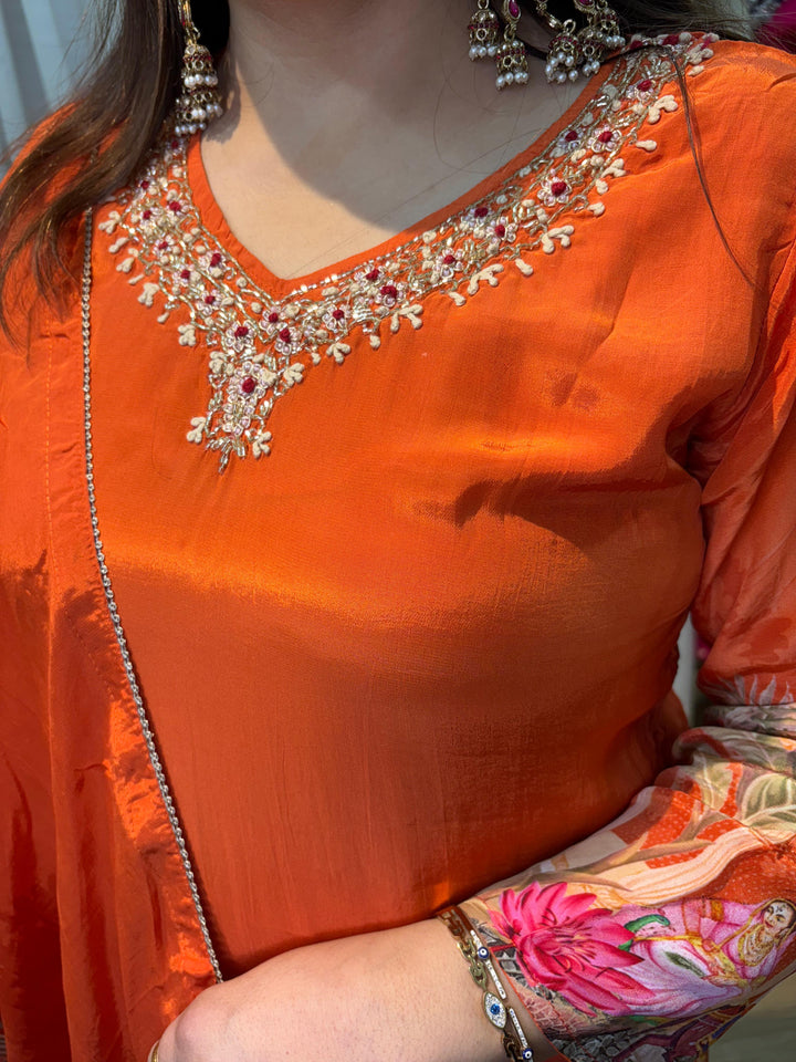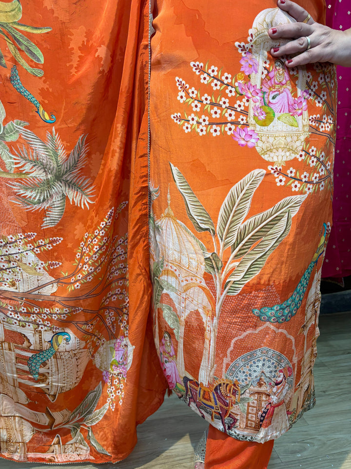 ORANGE PURE CREPE DIGITAL PRINT KURTA SET (Jodha)