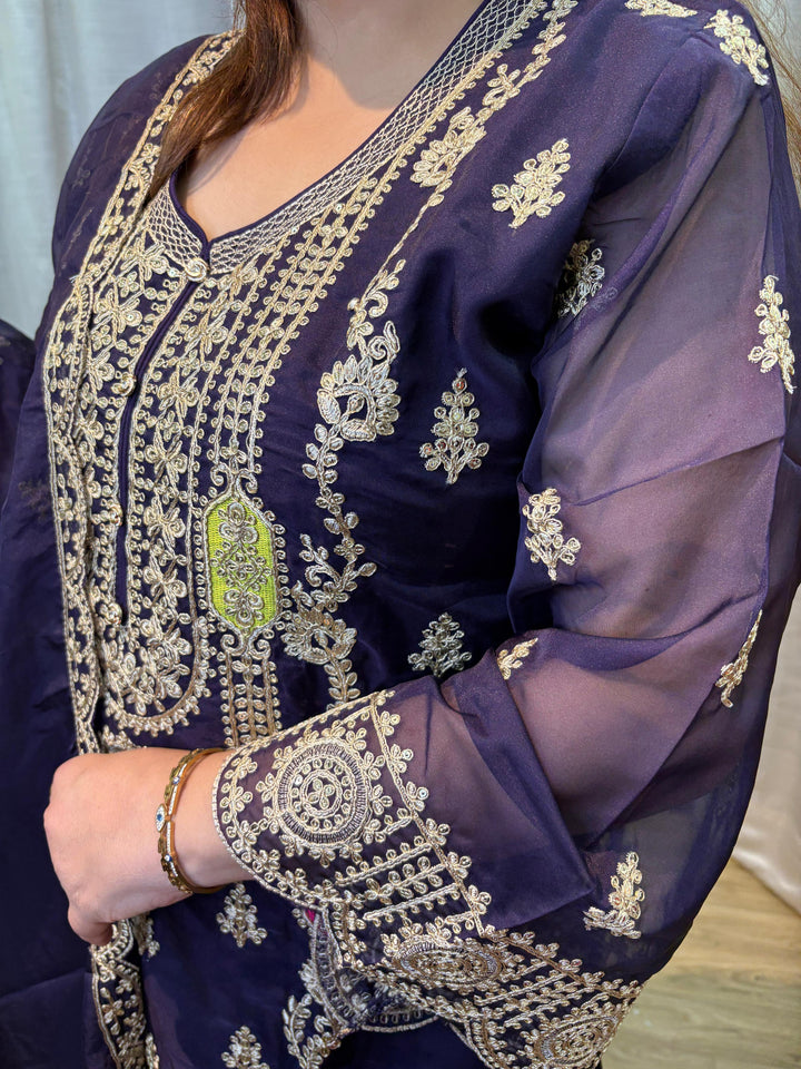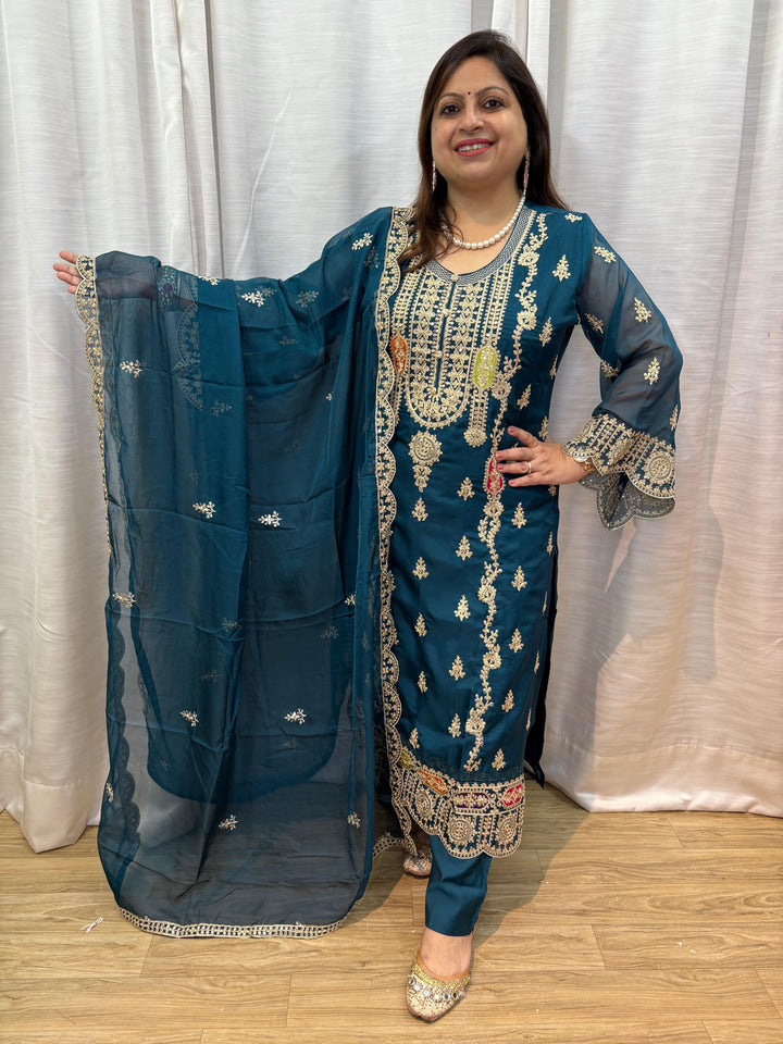 This elegant kurta set is designed to make a statement at any celebration. Crafted in rich fabric, it exudes festive charm and sophistication. The kurta is tailored for a flattering fit, paired with bottoms and a beautifully detailed dupatta that adds a graceful finish. Perfect for parties, weddings, or evening gatherings, this ensemble combines traditional elegance with a touch of modern glamour.