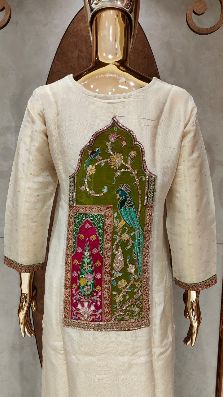 PURE MUSLIN IVORY EMBELLISHED KURTA SET