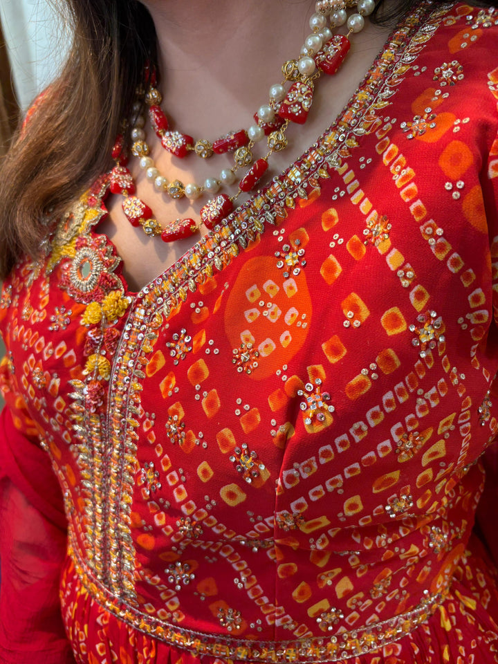 RED BANDHANI PRINT GOWN WITH DUPATTA