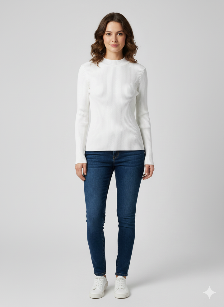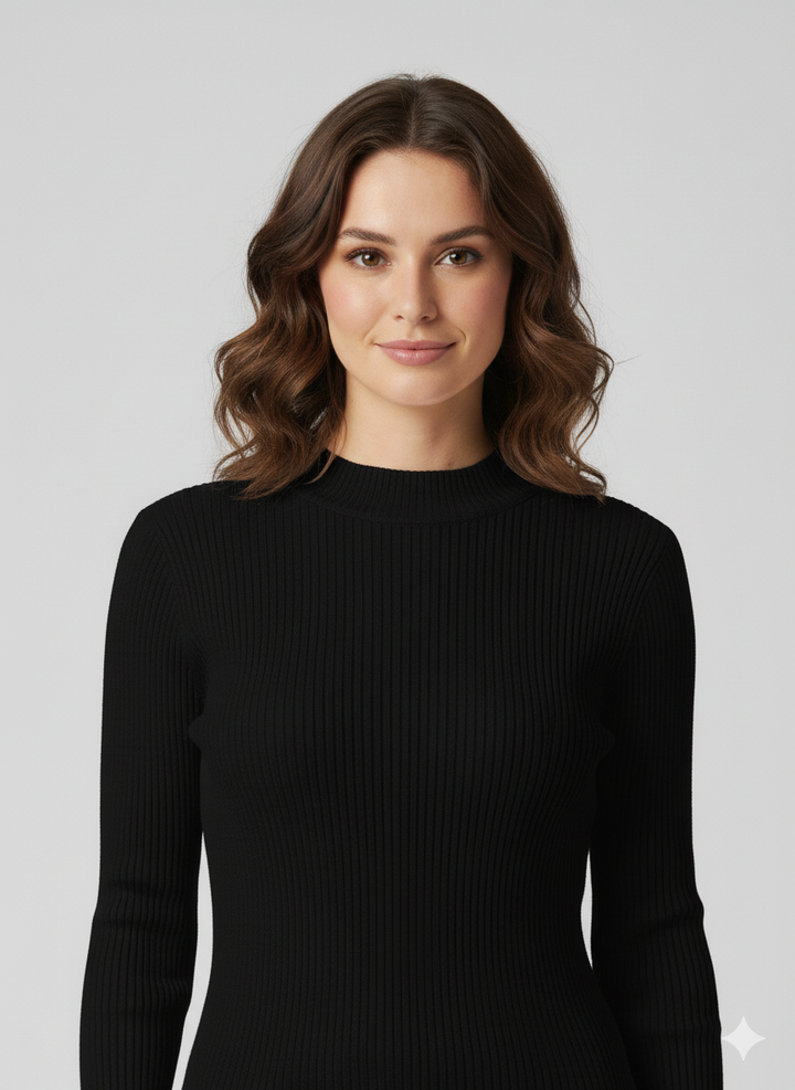 This Ribbed Mock-Neck Top is the ultimate wardrobe essential. Crafted from a soft, stretchy fine-knit rib fabric, it offers a beautifully fitted silhouette that moves with you. The chic mock-neck (or skiivy) collar and long sleeves make it a perfect piece for layering under blazers, jackets, or wearing solo with high-waisted jeans. Its flattering cropped length hits just right, making it a modern staple for all seasons.