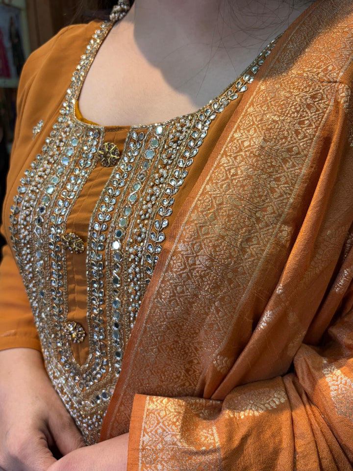 RUST GEORGETTE ANARKALI SET WITH BANARSI DUPATTA