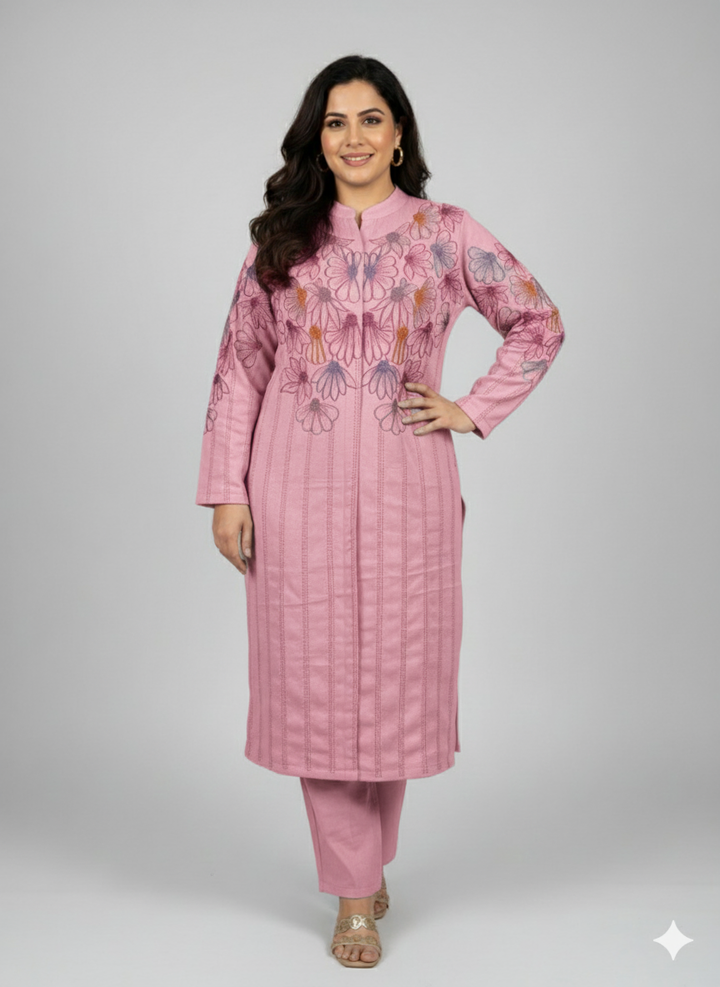 WOOLEN EMBROIDED TWO PIECE KURTA SET