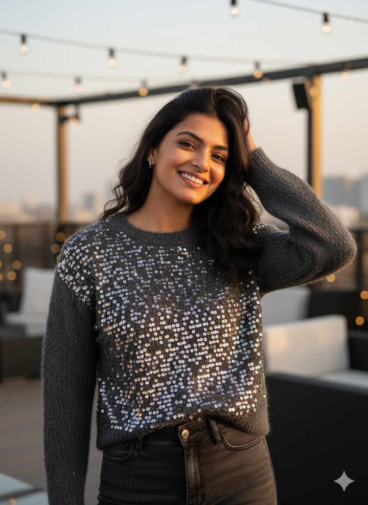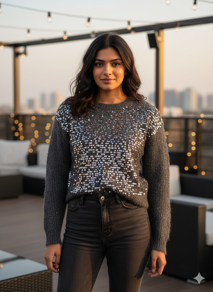 WOOLEN KNITTED SEQUIN SWEATER