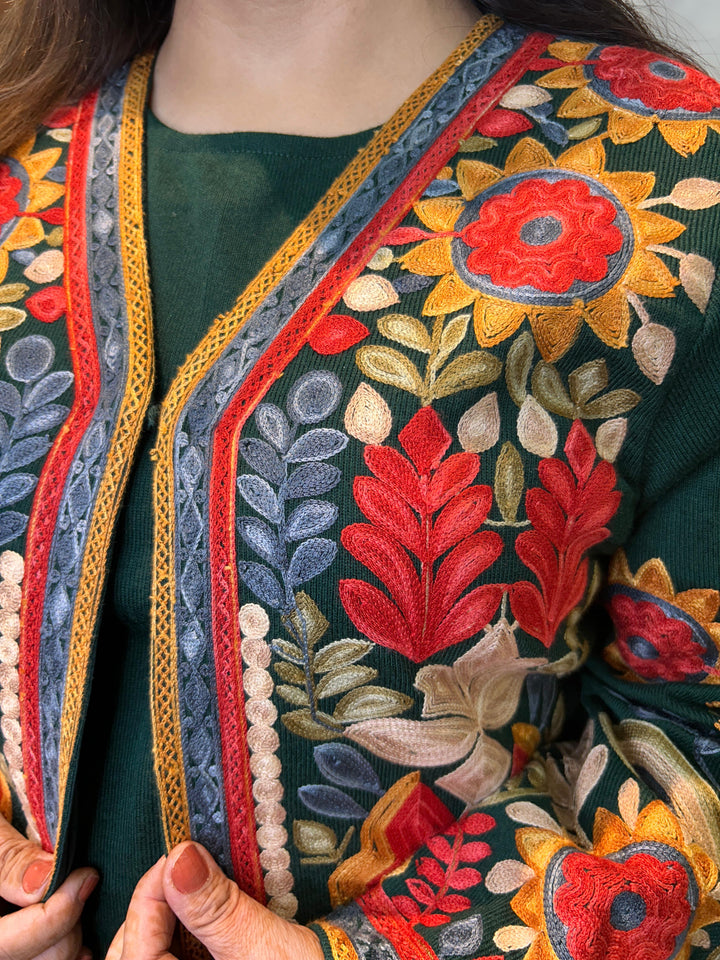 Embroidery: Kashmiri-inspired multicolor floral and geometric motifs