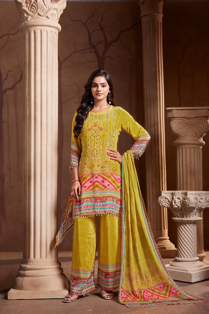 YELLOW CREPE C-CUT KURTA SET