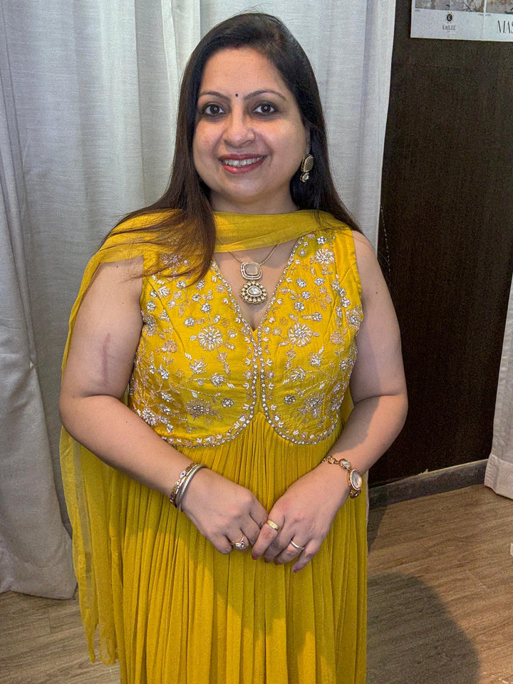 Color: The dominant color is a bright, deep yellow, often referred to as mustard or haldi yellow.